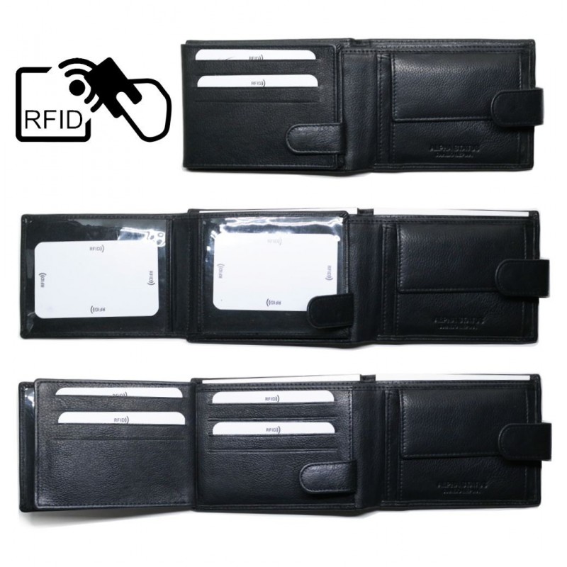 Ανδρικό δερμάτινο πορτοφόλι ALPHA STATUS 10106-0 RFID BLACK