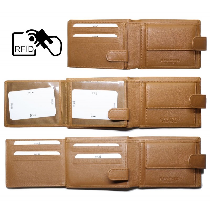 Ανδρικό δερμάτινο πορτοφόλι ALPHA STATUS 10106-0 RFID TAN