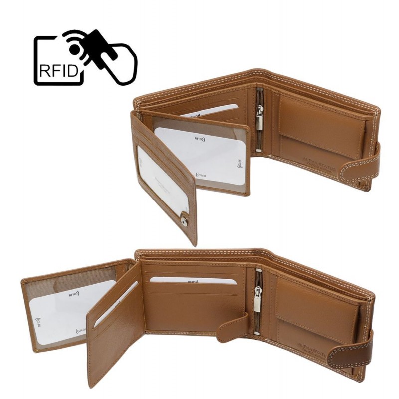 Ανδρικό δερμάτινο πορτοφόλι ALPHA STATUS 10111-0 RFID ΤΑΝ