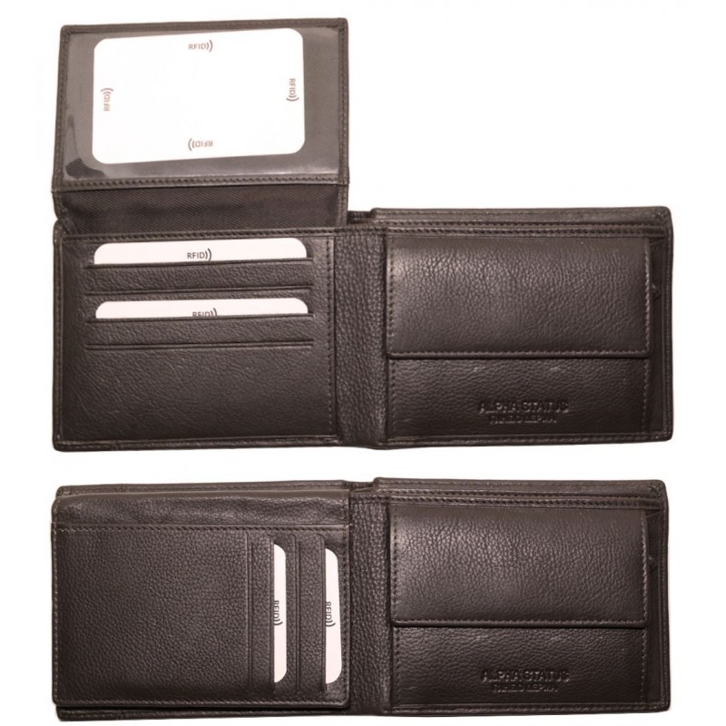 Όλα τα πορτοφόλια ALPHA STATUS είναι εφοδιασμένα με το ειδικό σύστημα προστασίας RFID το οποίο δημιουργεί μια ηλεκτρονική ομπρέλα προστασίας για τις χρεωστικές και πιστωτικές κάρτες σας. Έτσι δεν χρειάζεται πλέον να ανησυχείτε για κακόβουλες επιθέσεις σε σημεία με συνωστισμό, στα οποία άγνωστοι, με ειδικά μηχανάκια ανέπαφων συναλλαγών μπορούν να ¨ξαφρίσουν¨ την κάρτα σας.