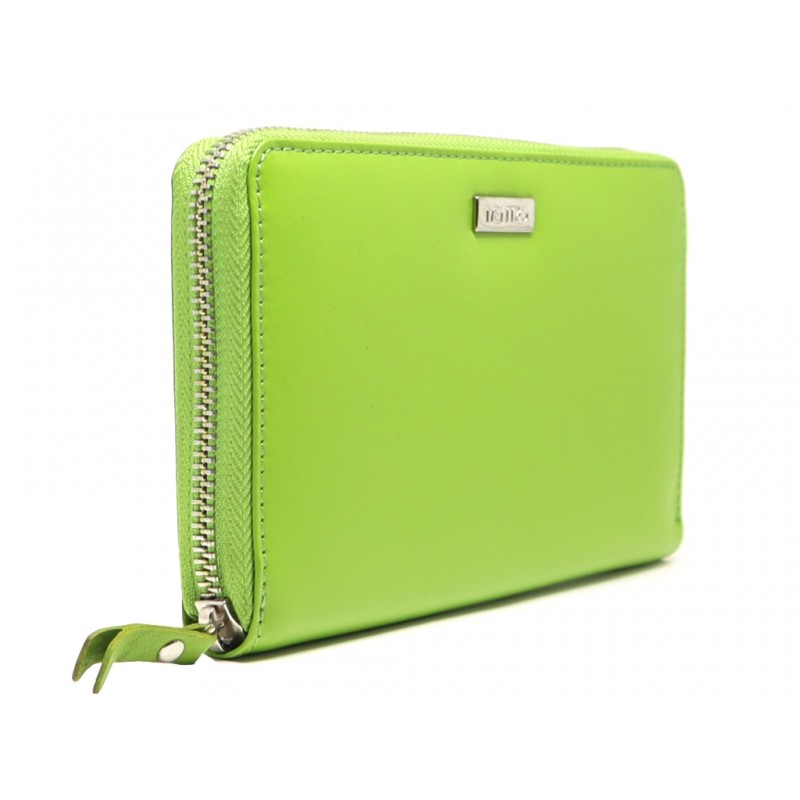 Το γυναικείο πορτοφόλι MENTZO SELENE L202 GREEN RFID ανήκει στην κατηγορία των μεγάλων πορτοφολιών, κλείνει εύκολα με φερμουάρ, διαθέτει πολλές θήκες για χαρτονομίσματα, κέρματα, κάρτες, προσωπικά αντικείμενα και θα μπορούσε να χωρέσει ακόμη και ένα μεσαίου μεγέθους κινητό. Είναι κατασκευασμένο από υψηλής ποιότητας δέρμα μοσχάρι. Ακόμη και μέσα δέρμα (φυσαρμόνικα), που σημαίνει τεράστια αντοχή στο καθημερινό άνοιξε - κλείσε, σε αντίθεση με παρόμοια πορτοφόλια που διαθέτουν ακρυλικό PU στο εσωτερικό και σύντομα αλλοιώνονται. Τα κοψίματα και οι γραμμές του ξεχωρίζουν για την αρτιότητα που οδηγεί στο τέλειο αποτέλεσμα.