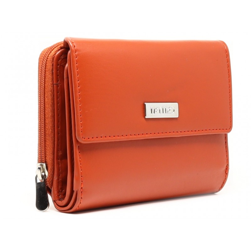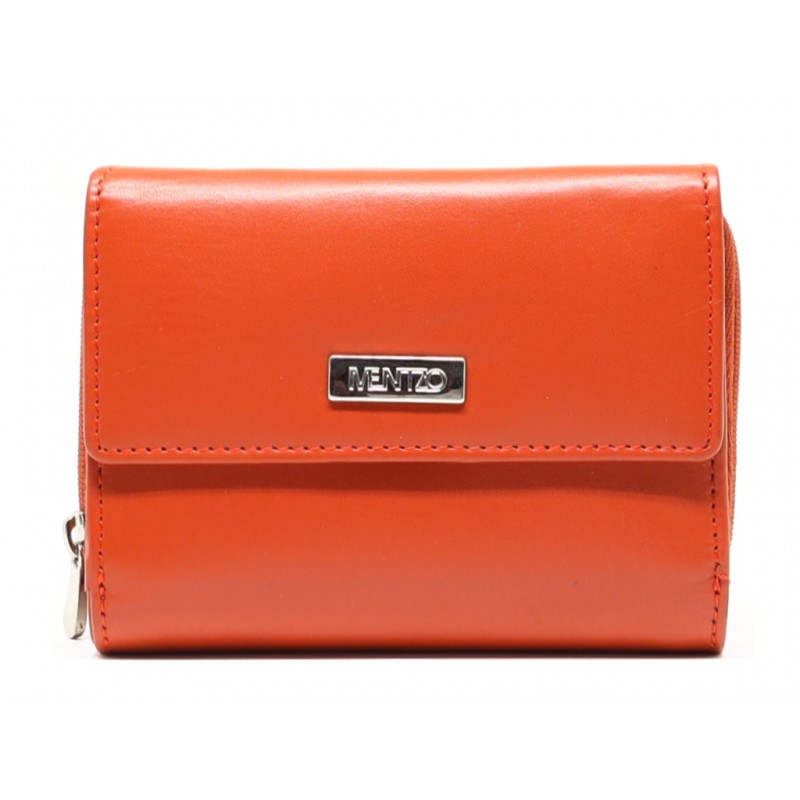 Το γυναικείο πορτοφόλι MENTZO CALYPSO L201 *ORANGE PAPAYA* RFID ανήκει στην κατηγορία των μεσαίων πορτοφολιών, κλείνει εύκολα με κουμπί, διαθέτει πολλές θήκες για χαρτονομίσματα, κέρματα και κάρτες. Είναι κατασκευασμένο από υψηλής ποιότητας δέρμα μοσχάρι. Ακόμη και μέσα δέρμα, που σημαίνει τεράστια αντοχή στο καθημερινό άνοιξε - κλείσε, σε αντίθεση με παρόμοια πορτοφόλια που διαθέτουν ακρυλικό PU στο εσωτερικό και σύντομα αλλοιώνονται. Τα κοψίματα και οι γραμμές του ξεχωρίζουν για την αρτιότητα που οδηγεί στο τέλειο αποτέλεσμα.